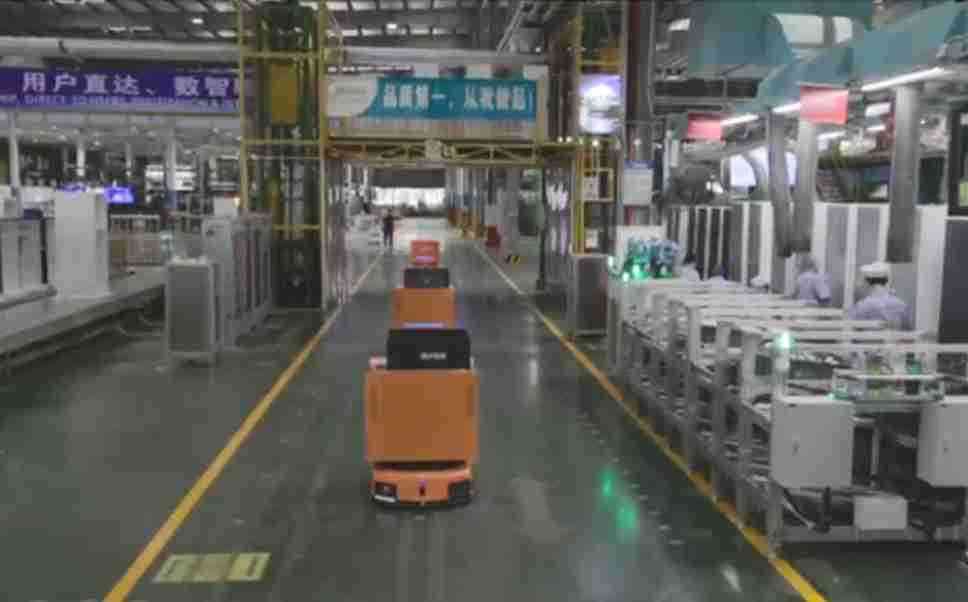 为车载冰箱物流配送打造的智能解决方案,,包含产中物流通过潜伏举升AMR搬运至线边,,产后成品物流智能仓储,,,流程包含产中物流智能齐套入库,,,线边安灯叫料AMR智能配送至线边,,,成品入库、、出库,,通过无人堆高车机器人,,,,智能仓储管理替代人工作业管理,,,,实现更高存储、、更高效率、、、更具柔性化的解决方案。。。